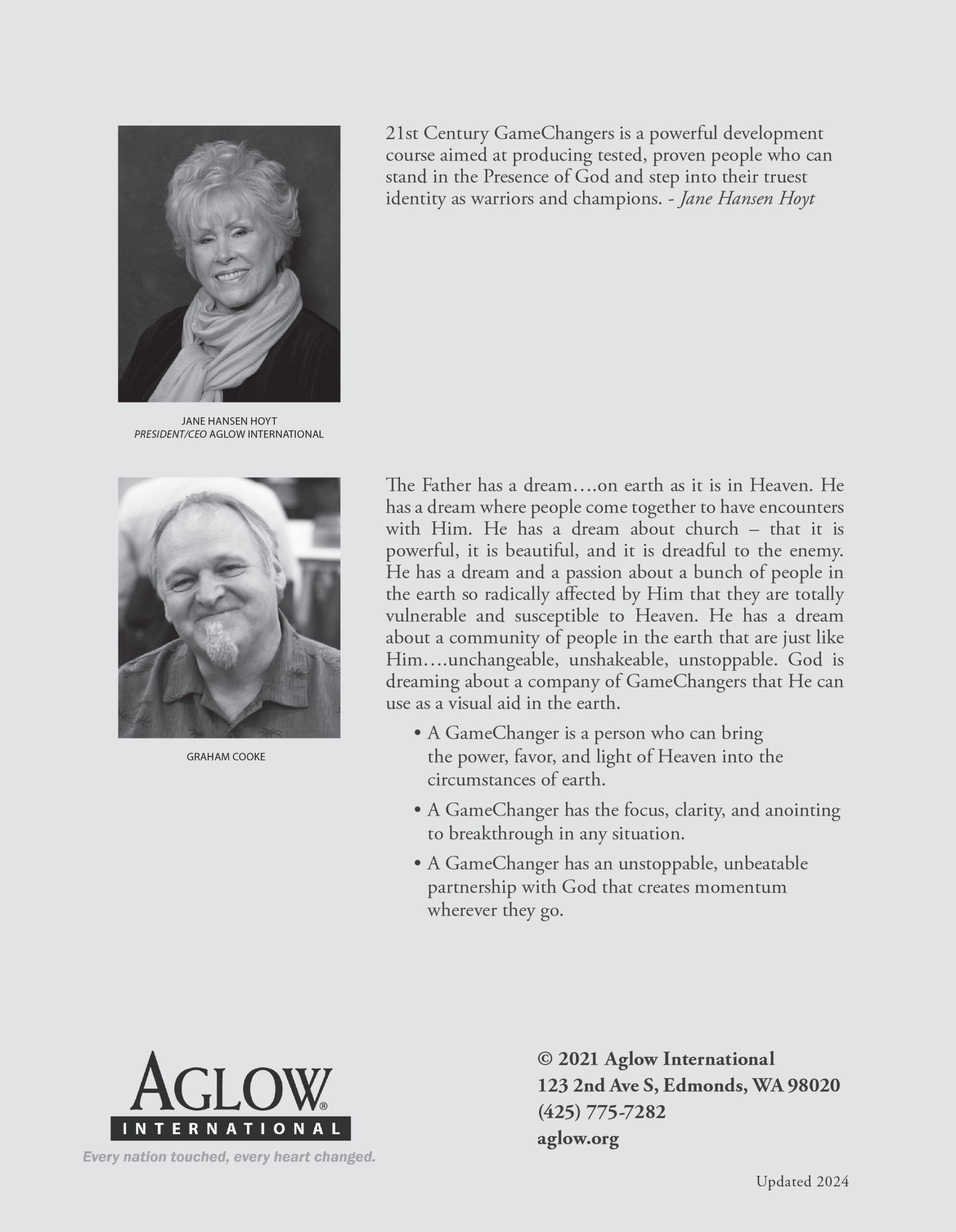 Because of the incredible life we found in walking through these two courses, taught by Graham Cooke, we have made it a priority for all Aglow leaders and future leaders to process through this material. Every Aglow member is encouraged to experience GameChangers/LifeChangers by participating in a group.